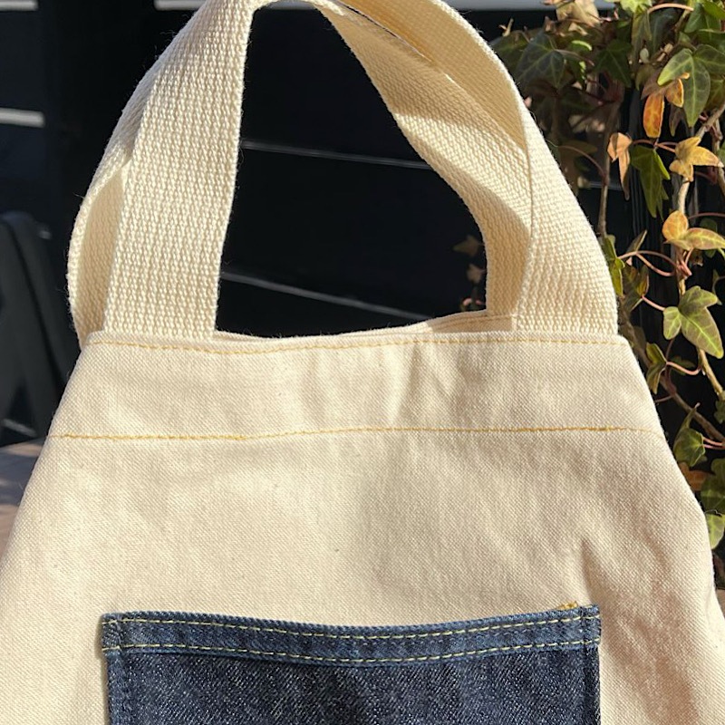 ■おにぎり形のバッグ。海苔の部分(デニム生地)はポケットになっております。