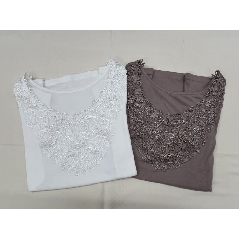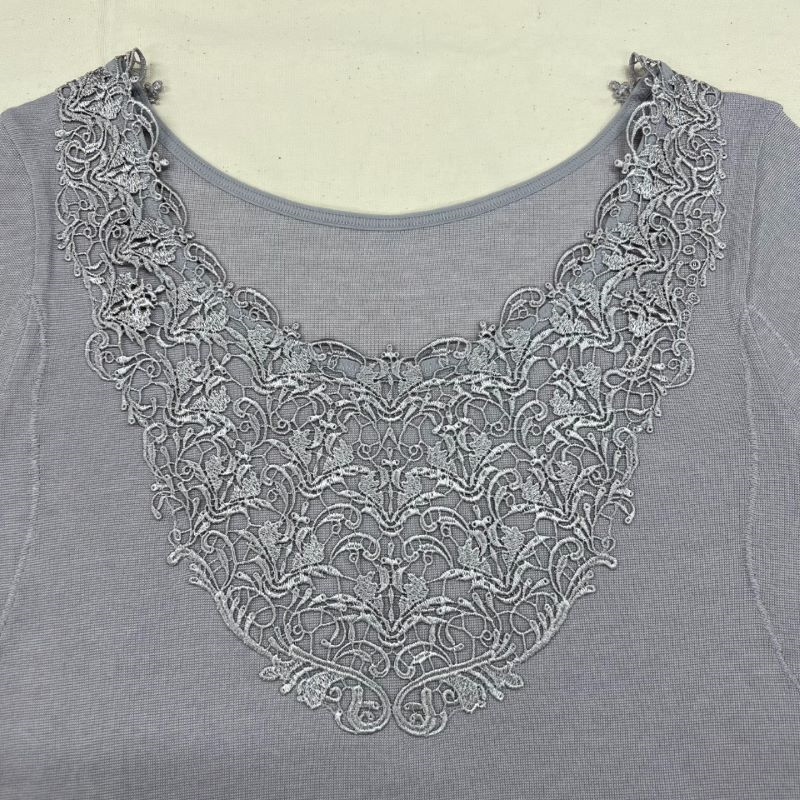 - ■オリジナルのアラベスク調刺繍レースを衿元に豪華にあしらった美しいフレンチ袖インナーです。